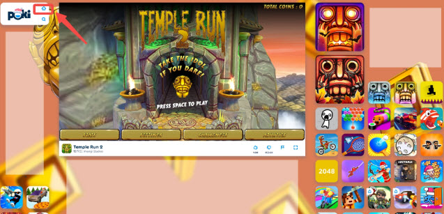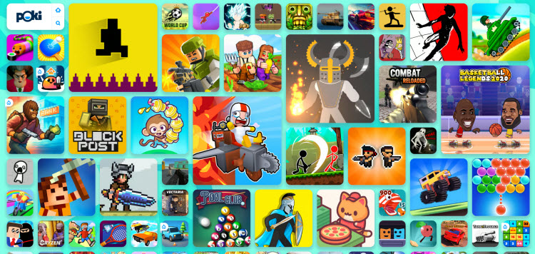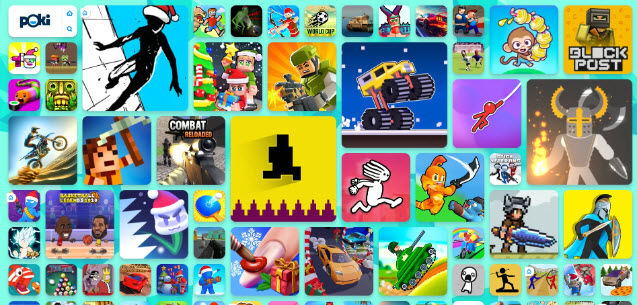 1、复制上述链接地址到浏览器地址栏打开(地址栏不是搜索引擎的搜索框!)接着我们就进入到poki网站首页了,如下图: