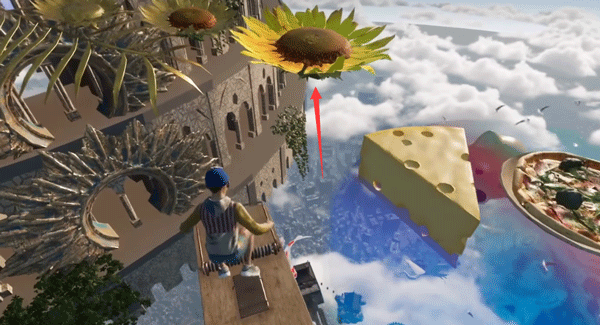 3、这里需要左转,从左边这几个平台绕过去,直接上前面的向日葵,不要经过中间的彩虹盘。