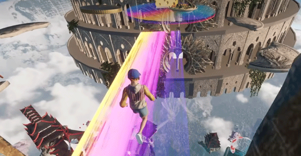 4、过了假平台后,前面的彩虹桥只要一路往前跑就能过了,非常简单。