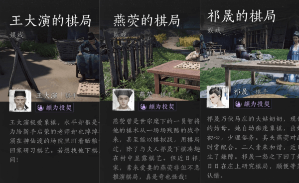 在神仙渡、丰禾村、伏马庄,下棋到100好感拿3个棋谱(好感度输棋+15,赢棋+10,弃子+5)