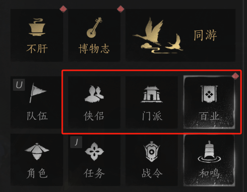 侠侣组队(18解锁)、加入百业(30级解锁)、加入门派