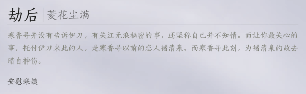 之后主线推荐做到去河边安慰寒姨之前(不然剧情和场景会有很大变化)