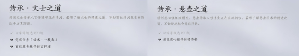 起名时可以选择两个探索技能。「酒行剑令」或「能言善辩」(探索技能是一系列可以为后续的战斗和探索提供增益效果的技能)这两个探索技能分别是对小游戏玩法【投壶】和【话术】有相对的加成