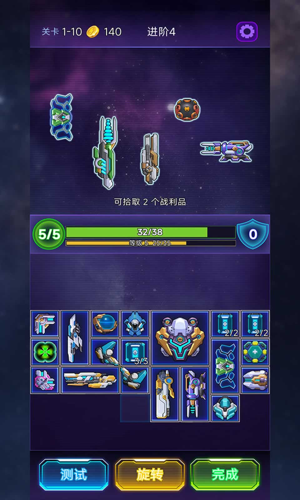2. 格子面板内放置了“装甲”类物品,“装甲”类物品会在你的回合开始时自动为你增加防御值。请注意装甲类物品的放置位置,以获得最大的防御值收益。