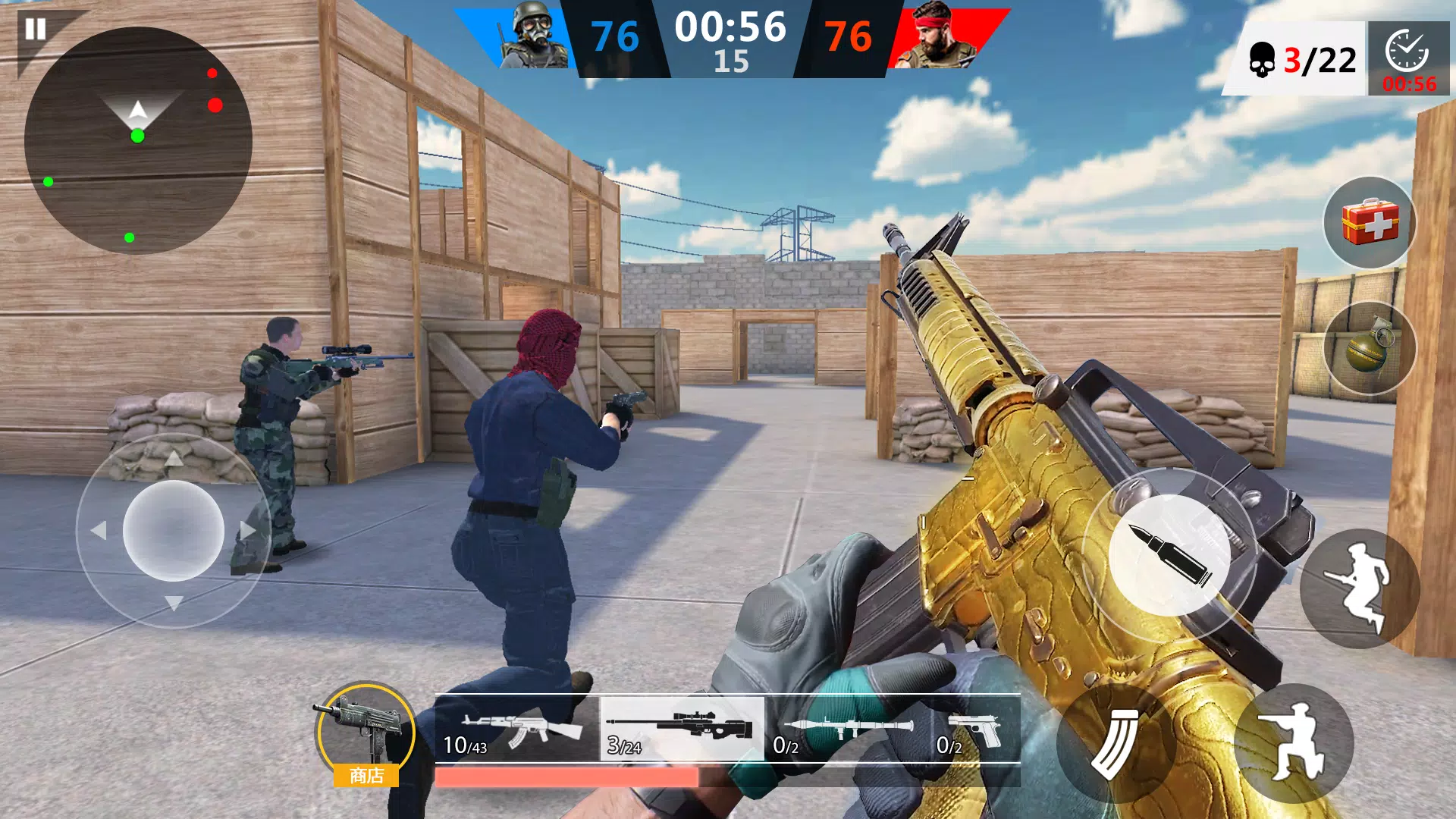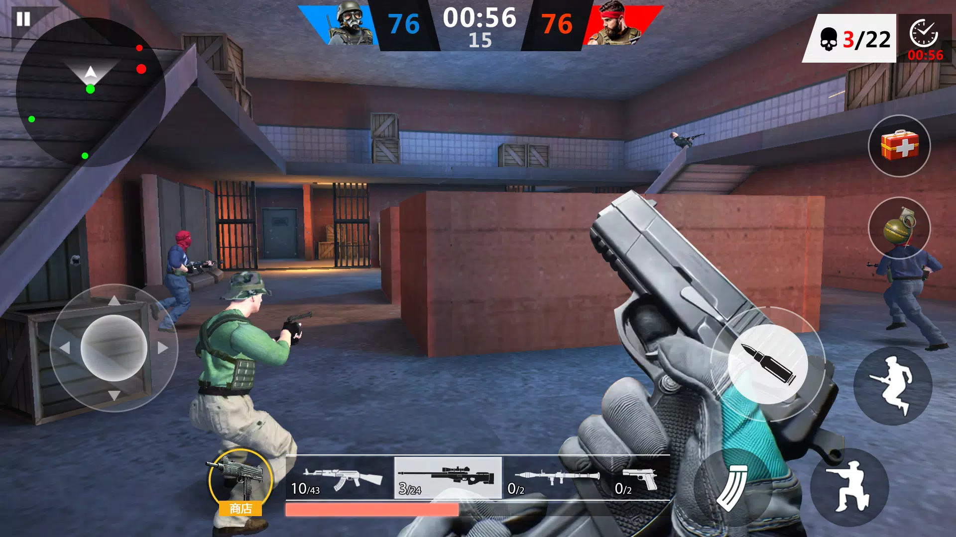 致命射击去广告版是一款独具魅力的射击游戏,完美呈现射击枪游戏精髓,带您开启仿若置身战争军事行动的热血FPS射击之旅。 游戏具备诸多亮点。它是经典的3D FPS多人射击游戏,逼真3D图形与炫酷动画,营造身临其境之感。拥有超5种丰富游戏模式,从团队协作的团队模式,到考验近身技巧的刀模式,再到狙击对决的狙击模式、惊险刺激的僵尸模式以及紧张的PVE模式,满足多样战斗需求。武器库更是丰富,20多种现代枪械,像沙漠之鹰、AK47等,且每款都有独特皮肤,带来全新射击体验。量身定制的战术地图,视觉效果出色。还有特殊行动任务,完成救援任务时,能充分感受PVP FPS动作的快感。 融合经典玩法、逼真画面、多样模式与丰富武器,为您打造极致射击体验。快来下载,沉浸在这热血的第一人称射击动作游戏中吧!