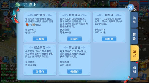 帮会:加入帮会,参与帮会活动,如帮会签到、帮会任务、帮会天阶战等,可获得帮贡等奖励,帮贡能在帮会商店兑换物品。