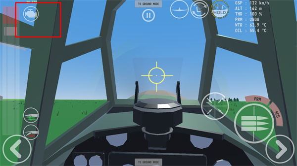 4、如图所示先点击点火按钮,然后飞机就会慢慢启动,玩家通过摆翼控制好飞机的方向,注意速度,左边是加速杆,加速过快容易飞机解体